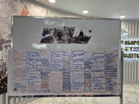 Завершился митинг приглашением кадет подумать над вопросом: «Что может сделать президентский кадет, чтобы сохранить историческую память о Великой Отечественной войне?» и сделать запись на стене размышлений.
