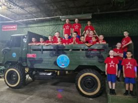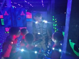 А кадеты 43 учебного взвода вместе со своими отцами соревновались в военно-тактической игре «Лазертаг» спортивного клуба «Беркут». Кадеты со своими отцами разбились на две команды: красные и синие. Отцы сражались вместе со своими сыновьями и мужественно их защищали от врагов. На площадке царила атмосфера боя, шел активный захват базы противника или флага. Данное мероприятие было направлено на сплочение как кадетского коллектива, так и коллектива родителей на этапе адаптации. Также игра в лазертаг развивает физическую активность, командный дух и стратегическое мышление.