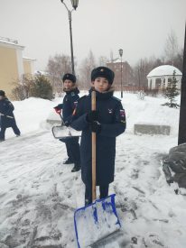 На 4 учебном курсе продолжаются трудовые будни, и даже сильные снегопады не могут остановить наших ребят. На этой неделе кадеты 5-х классов доказали, что звание «кадет» обязывает ко многому, даже когда речь идет о, казалось бы, привычном деле — уборке снега.